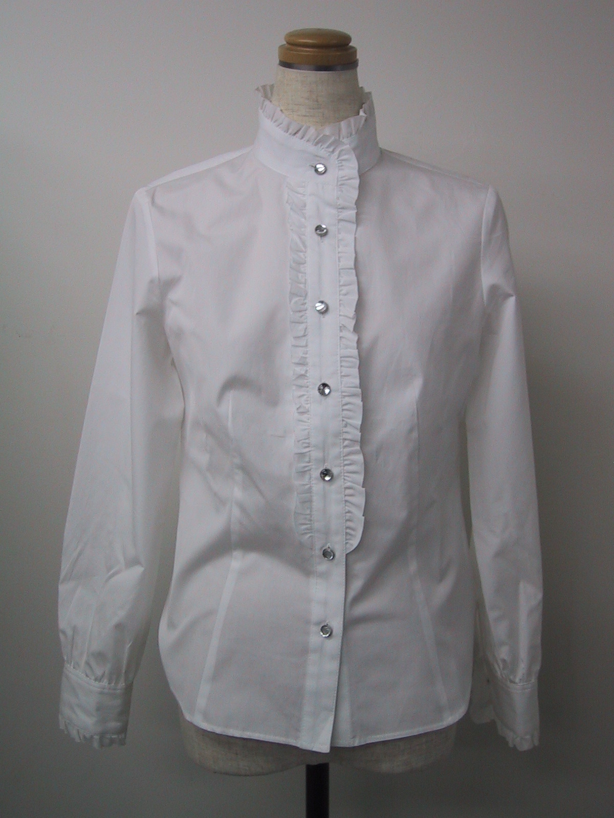 平井理央アナが白のフリル付スタンドカラーブラウスを